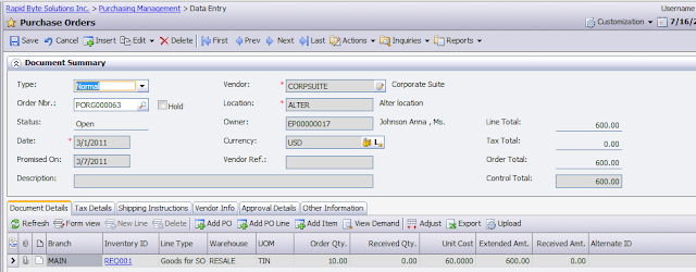 4. Now we can finally go to the Purchase Order and "open" one, to see what will happen: