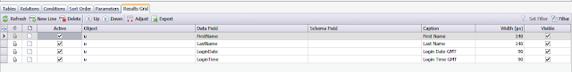 This GI will be dead simple. No relations, no sorting or parameters. Lets move straight to the last tab, Results Grid and select columns we need.