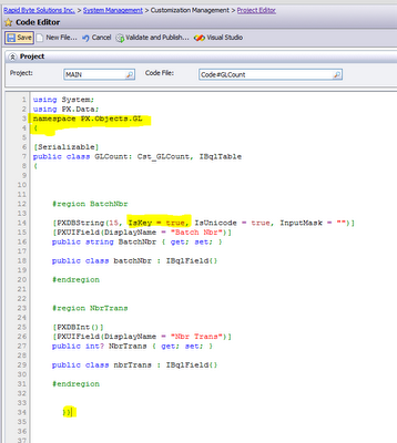 A. We have to assign a namespace to the DAC. Since I work with GL, let me add the General ledger name space to my DAC.