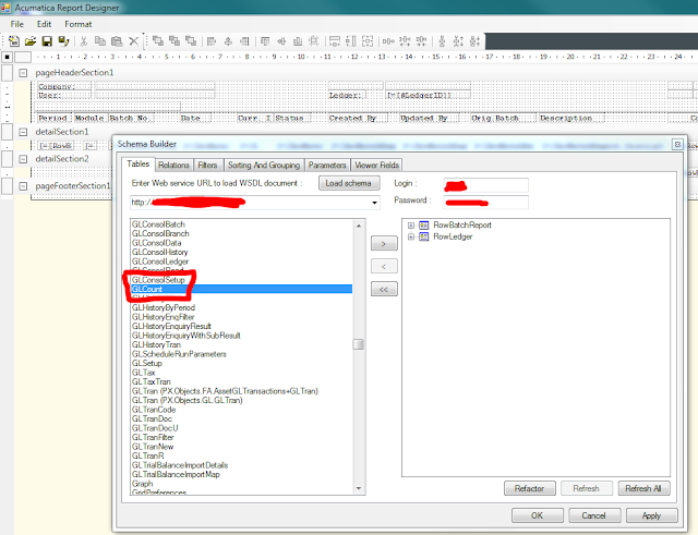 Once you open Report Designer, go to File->Build Schema, login to the database you are working with and here is our newly added View: