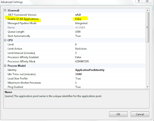 Assuming we use 64 bit machine to host our IIS server, we may still choose 32 bit or 64 bit compatibility for Application Pool.