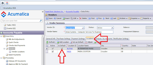 In Acumatica we implemented multiple Vendor Locations, which can be used to indicate Alternate Payee. Each location has Payment Settings attached. And you can make that location to be taken as default when preparing a check.